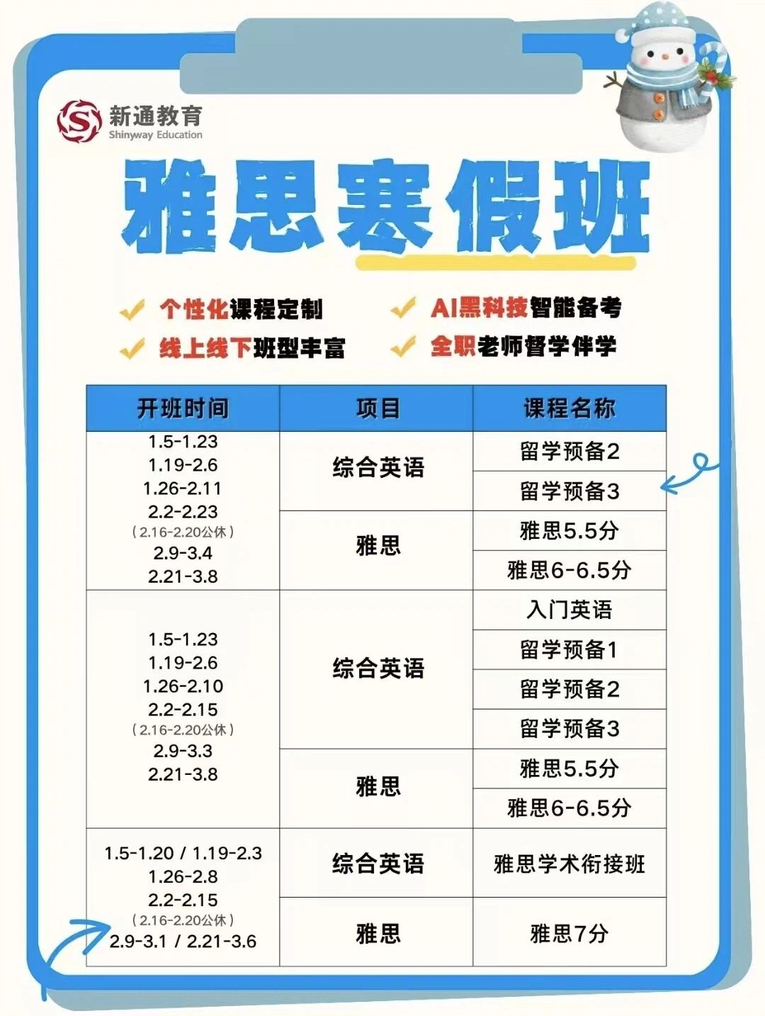重庆新通教育雅思寒假班全新上线!吃住学一体,预报名享优惠!